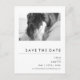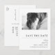 Esta tarjeta postal de guardar la fecha con foto minimalista moderna es perfecta para tu boda boho elegante. Su diseño abstracto simple y único acompañado por una tipografía minimalista contemporánea y una paleta de colores blancos y negros le da a este producto un toque de lujo formal elegante mientras mantiene un estilo bohemio chic simplista. Puedes dejarla tal como está o personalizarla con arte o gráficos de tu elección. También puedes buscar otros productos dentro de esta colección para unir toda tu boda.