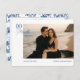 ¿Buscas una forma elegante de anunciar tu boda? Esta tarjeta postal de guardar la fecha con foto personalizable te permite subir tu foto de compromiso favorita mientras mantiene el diseño pulido y moderno. Con una elegante colocación de tipos que se adapta a la ropa más oscura y a entornos de playa, el reverso muestra un patrón atemporal de azul chinoiserie para un acabado clásico. Perfecta para bodas en la costa, parejas modernas o cualquiera que desee un toque refinado y personal.