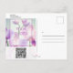 Las orquídeas proporcionan un fondo ornamental para estas postales de "ahorrar la fecha" de boda con orquídeas púrpuras. Genial para ocasiones especiales. Agregue su foto favorita en la parte posterior. La parte trasera también tiene un código QR que puede utilizar para un sitio web de boda, registro de boda, confirmación de asistencia y más. La plantilla también incluye su dirección de correo de devolución para que se imprima directamente en la postal. Utilice para complementar temas de eventos de boda florales, incluyendo temas tropicales. Utilice la plantilla para personalizar.