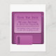 Divertida y un poco geek Anuncio de tarjeta postal de "Save the Date" de disco flexible con un antiguo sistema de respaldo de datos... ¡el disco flexible! Esta tarjeta postal de "save the date" para nerds de la informática es una forma inteligente y memorable de hacer saber a tus amigos y familiares que aparten la fecha de tu boda. Fácil de personalizar, simplemente agrega los detalles de tu día especial en los campos proporcionados. Haz clic en el botón "Personalizar" para cambiar las fuentes o los colores del texto.