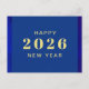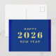 Tarjeta postal de vacaciones de Feliz Año Nuevo con colores azules y texto dorado. Ideal para aquellos que buscan tarjetas postales de vacaciones para celebrar el año nuevo. Bonitos colores azules. Texto personalizado en la parte delantera y trasera de la tarjeta. Utilice la plantilla para crear su propia tarjeta postal de Feliz Año Nuevo personalizada.