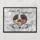 Postal con fotografía de feriado con temática náutica. Con una foto en forma de corazón y conchas grises