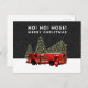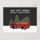 Tarjetas de Navidades de bomberos con humor de vacaciones, Santa Claus y camión de bomberos.