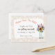 La vibrancia de las flores silvestres en un frasco, contra un borde de patrón floral de peonías claras, hace que este diseño sea una opción muy popular para una boda con tema rústico. Las tarjetas postales son una forma fácil pero efectiva de informar a sus invitados de su gran día venidero!