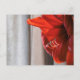 Envíe a un amigo una sorprendente postal con una vista de cerca de una hermosa flor de los Amaryllis de León Rojo iluminada por el sol. Los pétalos rojos de la flor, iluminados por el sol, se encuentran frente a unas cortinas beige deslucidas. Seis estambres emergen del centro oscuro de la flor, con filamentos rojos que se curvan hasta los anterres beige de aspecto difuso. El pistilo se curva a su lado. Para ver la fotografía Flor del León Rojo Amaryllis en otros artículos, visita mi tienda haciendo clic en el enlace "Artes Rocklawn" debajo. Fotografía digital a color. Copyright © 2016 Claire E. Skinner. Todos Los Derechos Reservados.