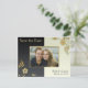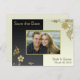 Agregue su propia foto a nuestras tarjetas postales personalizadas de guardar la fecha con un elegante fondo floral negro y dorado. Plantilla fácil de usar: simplemente agregue su foto e ingrese los nombres de la novia y el novio, junto con la fecha de la boda en el espacio provisto.