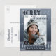 Una plantilla de tarjeta postal de foto de suéter feo con Feliz Navidad y un Feliz Año Nuevo. El diseño muestra un patrón azul marino con luces de copos de nieve brillantes. Ideal tanto para uso personal como para fines corporativos para decir Gracias a los clientes.
