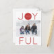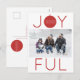 Esta elegante tarjeta postal de vacaciones presenta un texto alegre moderno que enmarca tu foto familiar favorita. Personaliza esta tarjeta moderna con el nombre de tu familia con texto en el adorno festivo. Personaliza la parte posterior escribiendo tu propio saludo o elimina el texto para enviar con tu propio saludo escrito a mano. Personaliza el adorno trasero con el nombre de tu familia. Agrega tu propia dirección para facilitar el envío.