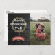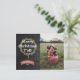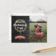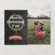 Saluda a la familia y amigos con esta postal de vacaciones de estilo rústico y occidental. Presenta "Feliz Navidad" en tipografía audaz y una corona de pinos y hojas dibujada a mano. Texto blanco sobre un fondo de grano de madera negra. Muestra una foto festiva a la derecha. Personaliza esta postal de vacaciones hoy!