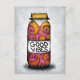 La tarjeta postal de frasco de especias Buenas Vibraciones presenta un frasco de especias sobre un fondo gris, pero rebosante de amarillo, rosa y naranja.