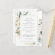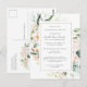 Elegante y femenina tarjeta postal de funeral de celebración de vida con flores de rosa rosadas.