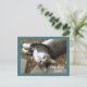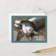 Esta encantadora tarjeta postal dice, "Recupérate pronto". Muestra una fotografía de un adorable gato atigrado con ojos verdes soñadores, pequeña nariz pecosa rosa, pecho blanco y patas blancas. Big Boy mira hacia arriba y posa para que se tome su foto antes de tomar una siesta sobre la tierra y las agujas de pino que han sido calentadas por el sol. Una tarjeta postal perfecta para todo amante de los gatos.