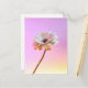 Postal fotográfica de la margarita gerbera blanca sobre un fondo rosa eléctrico