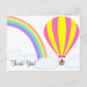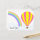 Una tarjeta postal con un globo aerostático, un arcoíris y un texto '¡Gracias!', sobre un fondo blanco. Personaliza la tarjeta postal con tu propio texto, color de fondo, entre otras opciones.