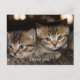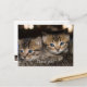 Tarjeta postal de agradecimiento con dos gatitos que se subieron a la espalda de la gata para ver qué hago.