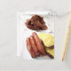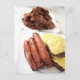 Back dice que la tarjeta postal de papá a la parrilla tiene botellas de pollo a la parrilla, salchichas y hamburguesas de queso