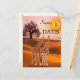 Una linda y romántica tarjeta postal de guardado de fecha con jirafas en un paisaje de estilo africano. Puedes personalizar todos los textos, también cambiar las fuentes y más. Elige "personalizar" para todas las opciones. Hermoso guardado de fecha para una pareja que se casa en el zoológico, ama los animales o planea un viaje de luna de miel de safari. Diseño original de ©Anne Vis.