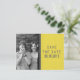 Tarjeta Postal de Guardar Fecha de Código Binario divertida y geek en amarillo con un fondo de código binario simple y una plantilla de foto. Este diseño original es perfecto para la pareja nerd que anuncia su boda. Fácil de personalizar, simplemente reemplace la foto con una propia y agregue los detalles de su boda. Haga clic en "Personalizar" para encontrar más opciones de personalización.