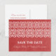 Tarjeta postal de guardar la fecha Bohemio Moderno elegante y sofisticada con un borde de remolino único y un fondo con aspecto de papel vintage en rojo. Esta tarjeta postal elegante es perfecta para anunciar tu boda con tema asiático o bohemio. Fácil de personalizar, simplemente agrega los detalles de tu boda en los campos de texto proporcionados. Haz clic en "Personalizar" para encontrar más opciones de personalización.