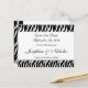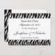 Este diseño de estampado de cebra en blanco y negro con su letra ornamentada es una forma elegante de enviar sus anuncios de guardar la fecha.