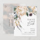Diseñamos esta tarjeta postal de "Save The Date" con foto de escritura floral blanca para completar tu boda rústica oscura tropical. Con su verde de acuarela bohemio y sus flores modernas boho de invierno, incluyendo protea, dalia y loto seco, el diseño seguramente resaltará tu tema verde y blanco minimalista y melancólico. Cambia el texto y agrega una foto para hacerlo tuyo. Además, asegúrate de revisar el resto de la colección para encontrar artículos coordinados que unan toda tu boda. https://www.zazzle.com/collections/white_floral_collection-119896729923706651