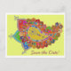 Tarjeta postal de guardar la fecha con paisley multicolor en la portada.
