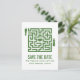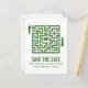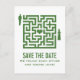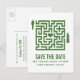 Tarjeta postal de guardar la fecha divertida y original del laberinto del amor en verde oscuro con un laberinto con un corazón en el medio y una novia y un novio a cada lado, esperando encontrarse y enamorarse. Este dulce diseño es una opción encantadora para anunciar tu próxima boda. Fácil de personalizar, simplemente rellena los detalles de tu boda en los campos de texto proporcionados. Haz clic en el botón "Personalízalo" para encontrar opciones de personalización adicionales.