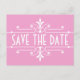 Tarjeta postal de guardar la fecha ornamental sencilla y elegante en rosa y blanco con un borde sofisticado de florituras estilo art déco. Fácil de personalizar, simplemente agregue los detalles de su boda en los campos de texto proporcionados. Haga clic en "Personalizar" para encontrar más opciones de personalización.