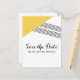 Moderna y trendy Tarjeta postal de guardar Save the Date con franja geométrica con un triángulo amarillo y acento de franja delgada. Esta tarjeta postal simple pero elegante está configurada para personalizarse fácilmente con la información de su boda. Encuentre más opciones de personalización haciendo clic en Personalizar.