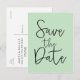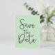 Tarjeta postal de guión moderno SAVE THE DATE de menta y negro. Artículos coincidentes disponibles.