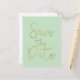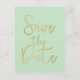 Tarjeta postal de guion moderno SAVE THE DATE menta y dorado.