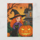 Tarjeta postal de Halloween de calabaza arañas bruja gato negro para Postcrossing