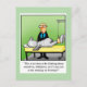 Disfruta difundiendo risas junto con tus deseos de recuperación con esta divertida tarjeta postal de recuperación del artista Bill Abbott. Personajes de dibujos animados maravillosamente divertidos y ligeramente sarcásticos en situaciones y entornos hilarantes que seguramente traerán una sonrisa a la cara de cualquiera. ¡Gran diversión para el personaje maravillosamente divertido y ligeramente sarcástico que conoces! Las caricaturas de Bill Abbott han aparecido en la revista Reader's Digest, calendarios Mead, tarjetas de felicitación y muchos otros lugares.