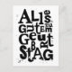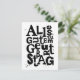 Tarjeta postal en blanco y negro hecha a mano con un diseño tipográfico de cumpleaños que dice "Feliz Cumpleaños" en alemán.
