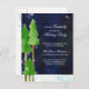 Árboles de invierno, copas de nieve, árboles de invierno elegantes y fondo texturado con colores azules profundos diseñados en postales de invitaciones de fiesta personalizado. Fiesta de vacaciones artística, única y elegante invita a su reunión de DIVERSIÓN y FESTIVIDAD! Todo el texto de ejemplo puede ser totalmente personalizado con su propia redacción. También puede cambiar las fuentes, tamaños y colores del texto.