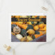 Esta invitación a la fiesta de la cosecha presenta una foto de una gran caja de madera llena de calabazas de diferentes formas y tamaños. Una de las calabazas (al que llamaremos Gord) sonríe a la cámara. El texto de la tarjeta postal se puede personalizar con los detalles de su evento.