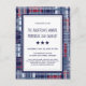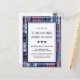 Esta tarjeta de invitación de fiesta patriótica y festiva presenta un fondo de patrón de madras rojo, blanco y azul con tres estrellas de acento azul marino. Personalice fácilmente el texto para su evento especial. Perfecto para el Día de la Bandera, el Cuatro de Julio, el Día de los Caídos, el Día del Trabajo, o cualquier evento temático de verano o patriótico.