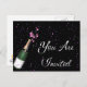 Tarjeta postal de invitación con confeti y botella