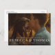 Esta moderna tarjeta postal de guardar la fecha con foto anuncia su próxima boda con estilo. Este producto permite a las parejas mostrar una foto apaisada o de paisaje a sangre, personalizar sus nombres y detalles del evento. El texto adicional en la parte posterior permite agregar más detalles del evento. Esta es una forma divertida y económica de enviar guardar fechas y ni siquiera necesitarás un sobre.