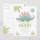 Invitación de cumpleaños temática de dinosaurios. Para niños. Globo. Personalizable. Personalizada. Estegosaurio. Rosa. Verde. Lunares. Globos. Pintado a mano. Dibujado a mano. Tarjeta postal.