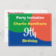 invitación para una fiesta de cumpleaños especial con nombre y número de años. Tarjeta postal de invitación de cumpleaños para un niño de 9 años