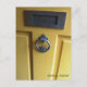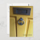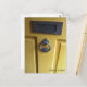 Una sencilla puerta amarilla con un timbre tradicional irlandés de la puerta Claddagh y ranura para correo. Imagen tomada en Galway, Irlanda. Tarjeta postal apropiada para enviar una simple nota a un amigo o a un ser querido.