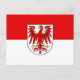 Tarjeta postal con la bandera de Brandeburgo (Brandenburgs), diseño con dos bandas de rojo y blanco con el escudo de armas del estado con una ilustración de un águila roja en el centro
