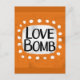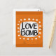 "Love Bomb Bomb" (Bomba de amor) es un divertido diseño de texto con una forma de acento blanco rodeado de puntos de textura caprichosos.