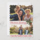 Tarjeta de Navidad antigua con una escena de personas subiendo a un tren en Navidad en la parte delantera. Tus fotos personalizadas y saludo personalizado en la parte trasera.