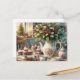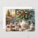 Esta tarjeta postal presenta una ilustración digital de una cocina de granja con un adorable centro de mesa de acebo, tetera de estilo campestre, tazas de té y deliciosos pastelitos. Esta tarjeta postal de la fiesta del té de Navidad es perfecta para cualquiera que ame el encanto del campo