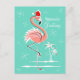 Diseño elegante con un toque retro con un flamenco rosado festivo con un sombrero de Santa Claus rojo, estrellas y palmeras decoradas con azulejos sobre un fondo acuático. Un diseño de personalizable para que puedas personalizar con tu propio texto, imágenes e ideas. Imagen original de arte digital creada por Quirky Moda.