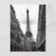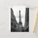 Postal con foto de una calle parisina y de la Torre Eiffel.