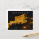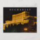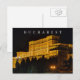 Una hermosa vista del Palacio del Parlamento en Bucarest, Rumania, por la noche impresa en una tarjeta postal.