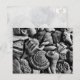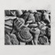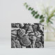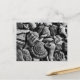 Postal fotográfica de conchas blancas y negras. Esta imagen de conchas de conchas incluye un paro, un paro relámpago, un erizo marino, una concha de gusano y trozos de conchas que proporcionan formas y texturas interesantes. En blanco en la parte posterior para cualquier ocasión.